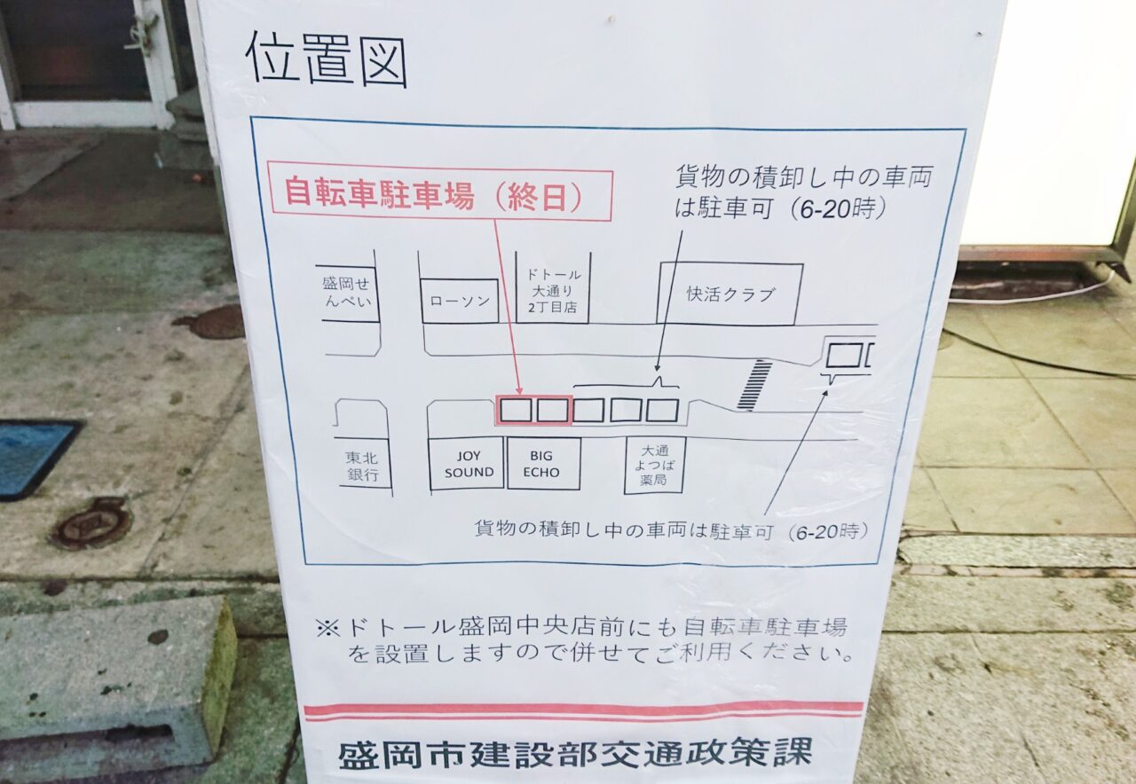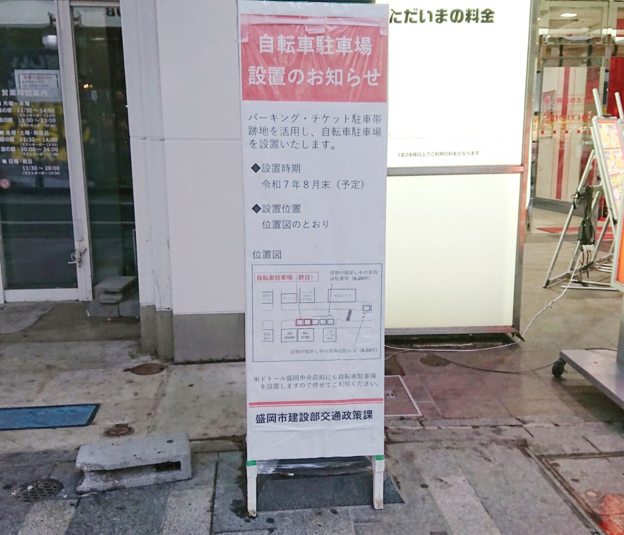 自転車駐車場が設置されるはドトール盛岡中央店前はこちら↓