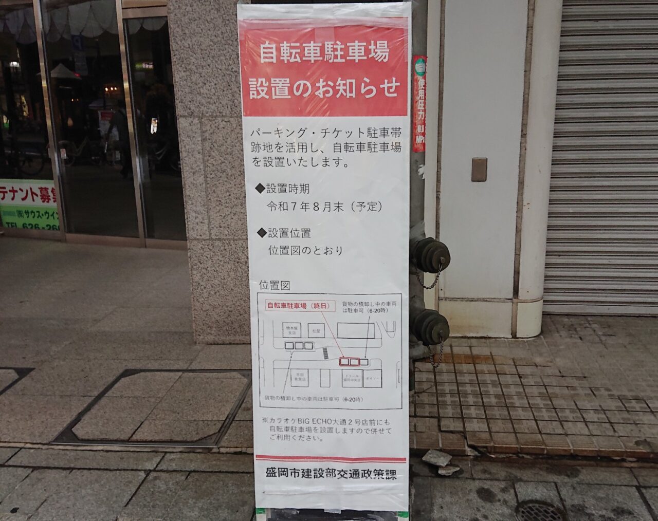 【盛岡市】8月末より大通りのパーキング・チケット駐車帯跡地に自転車駐車場が設置されるそうです。