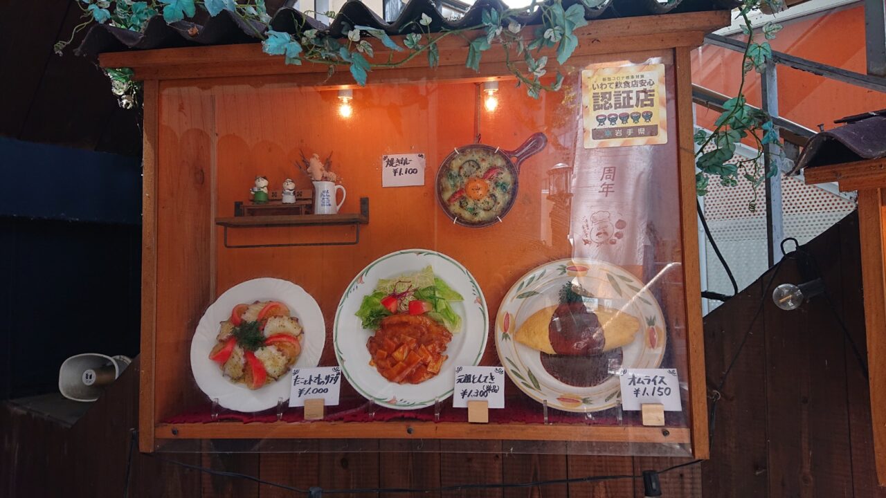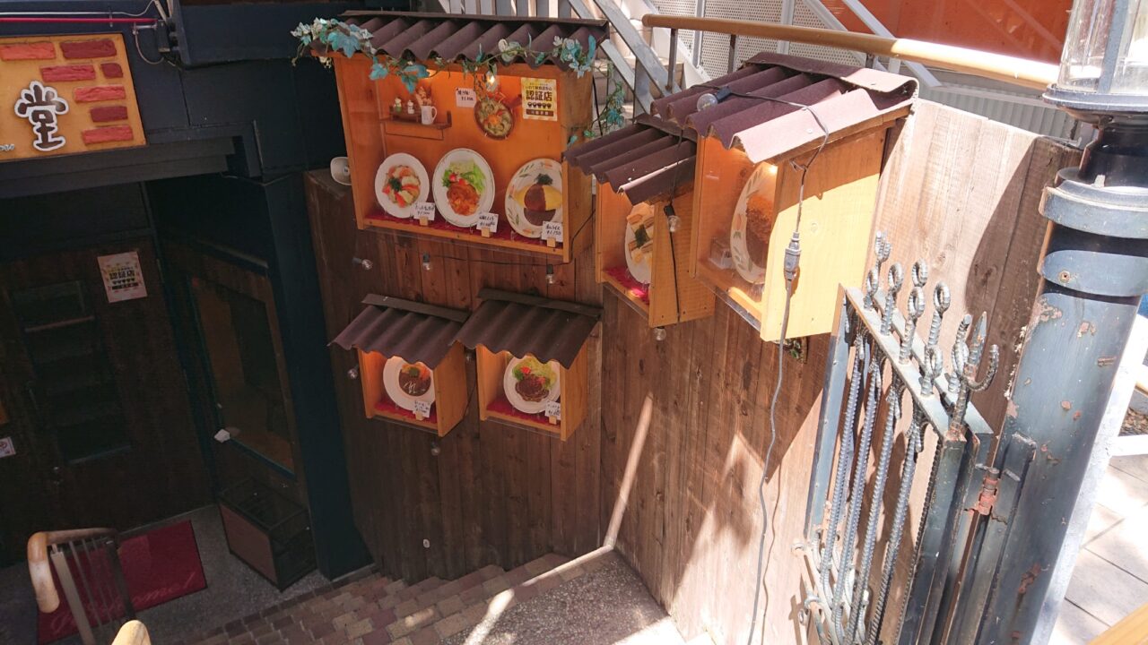 入り口に向かう途中には、お店で提供しているメニューの見本が飾られており、入店前からなにを食べようかと食欲をそそります。