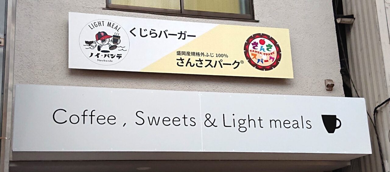 ノイ・バンデは岩手の文化やスポーツの応援などがコンセプトのお店です。宮古市の鯨専門店から仕入れた鯨肉で作るくじらバーガーや、規格外のりんごとぶどうのジェラートなど、盛岡ではなかなか巡り合えないオリジナルのメニューがあるお店でした。