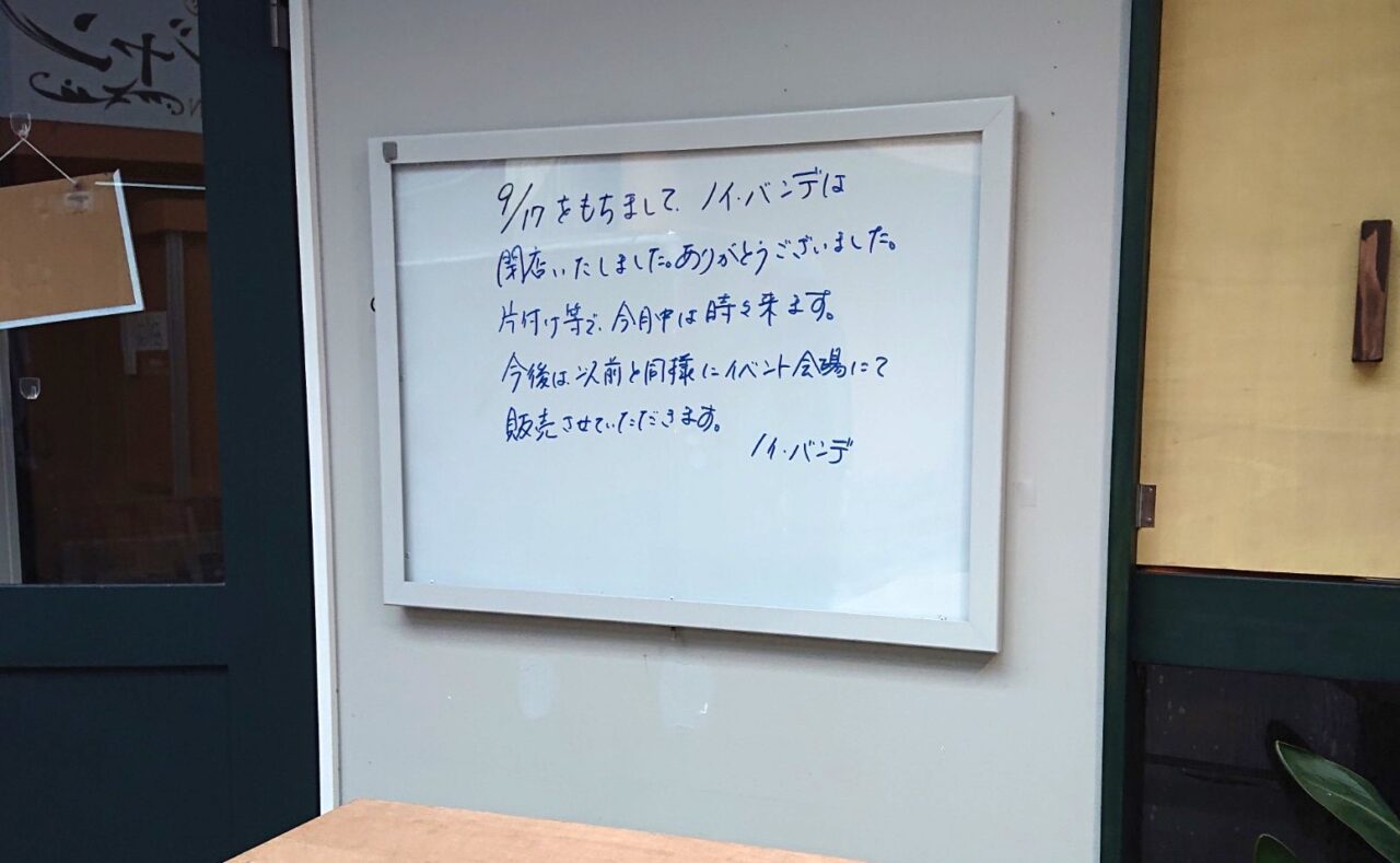 【盛岡市】肴町のいろいろと応援するカフェ ノイ・バンデが、9/17をもって閉店していました。