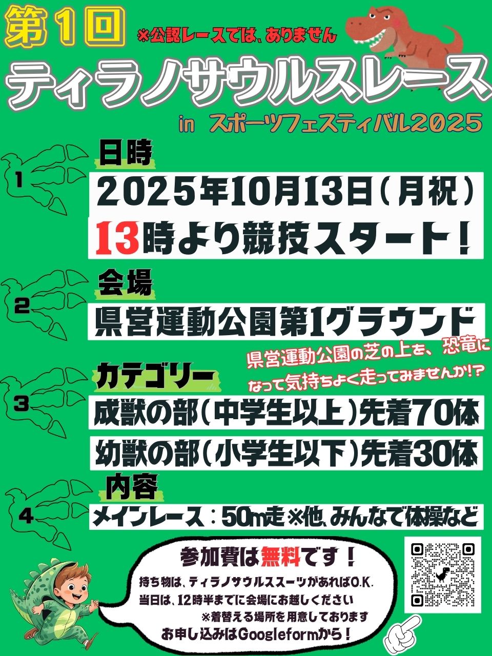 体験ブースのほかにも屋台村やミニ福祉バンク市、全国各地で話題になっているティラノサウルスレースも開催されます。体験ブースや企画の楽しそうな雰囲気を感じたり、見たりしながら、ゆったりとイベントを楽しむのもいいですね!