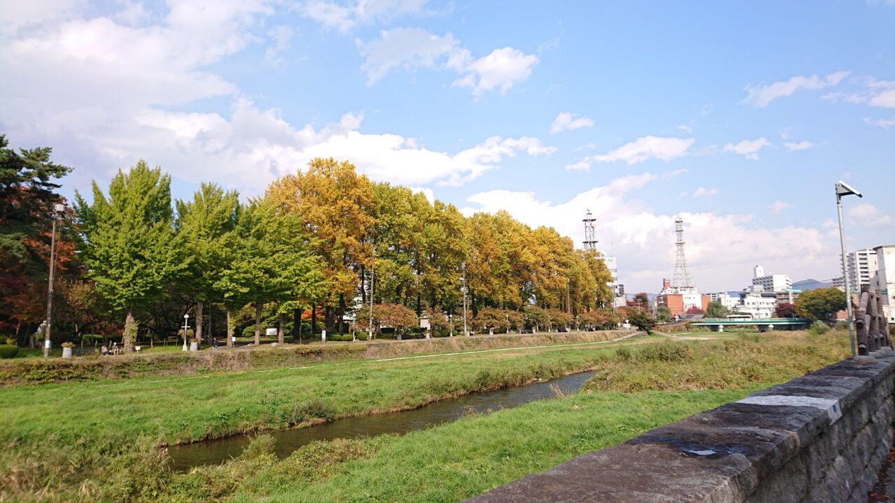 こちらは中津川に架かる毘沙門橋から見える盛岡城跡公園付近の木々の様子です。見ごろまではもう少しですが、色の種類が豊富で見ていて楽しめました! 通勤や通学、おでかけの際に色づいた木々を眺めてみてはいかがでしょうか?