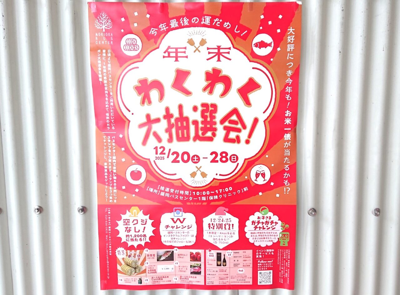 盛岡バスセンターで2025年12月20日(土)から28日(日)まで、年末わくわく大抽選会が開催されます!
