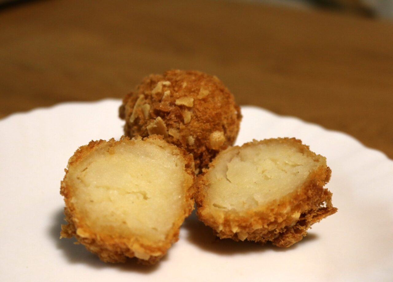 想像以上のザクザクした食感がクセになります。南部せんべいをブレンドした衣の心地よい食感のあとには、ふわっとじゃがいものやさしい風味が感じられました。また食べたくなる楽しい食感とおいしさです!