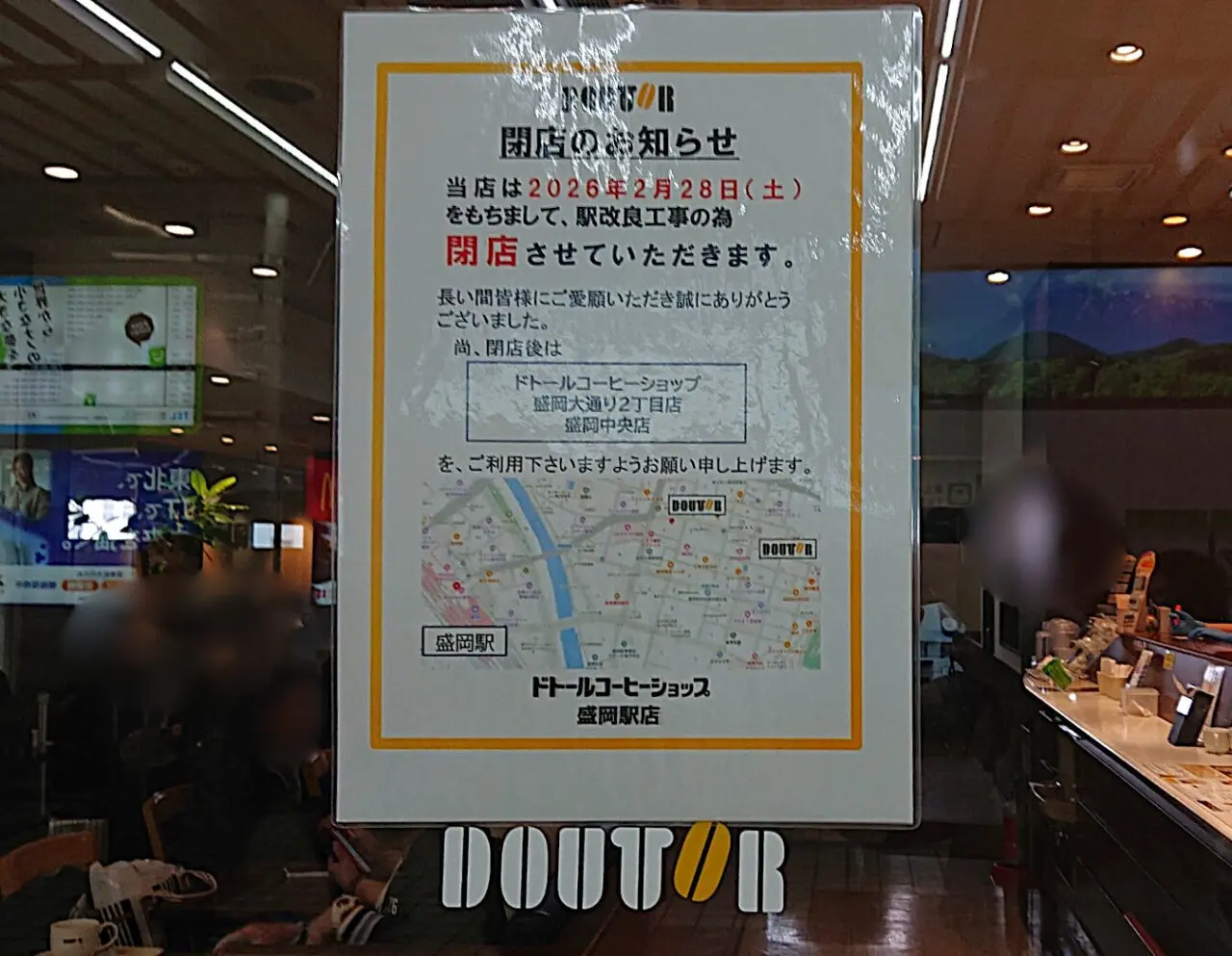 【盛岡市】3店舗が同時に閉店。JR盛岡駅の北側エリアにある「ドトールコーヒーショップ」「NewDays」「八百屋 たけうち」は2/28(土)をもって営業終了するそうです。