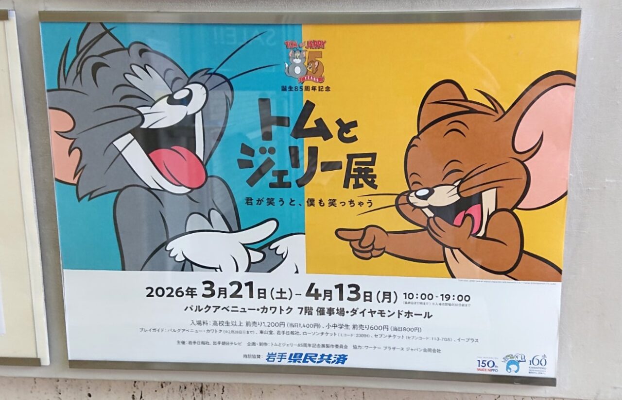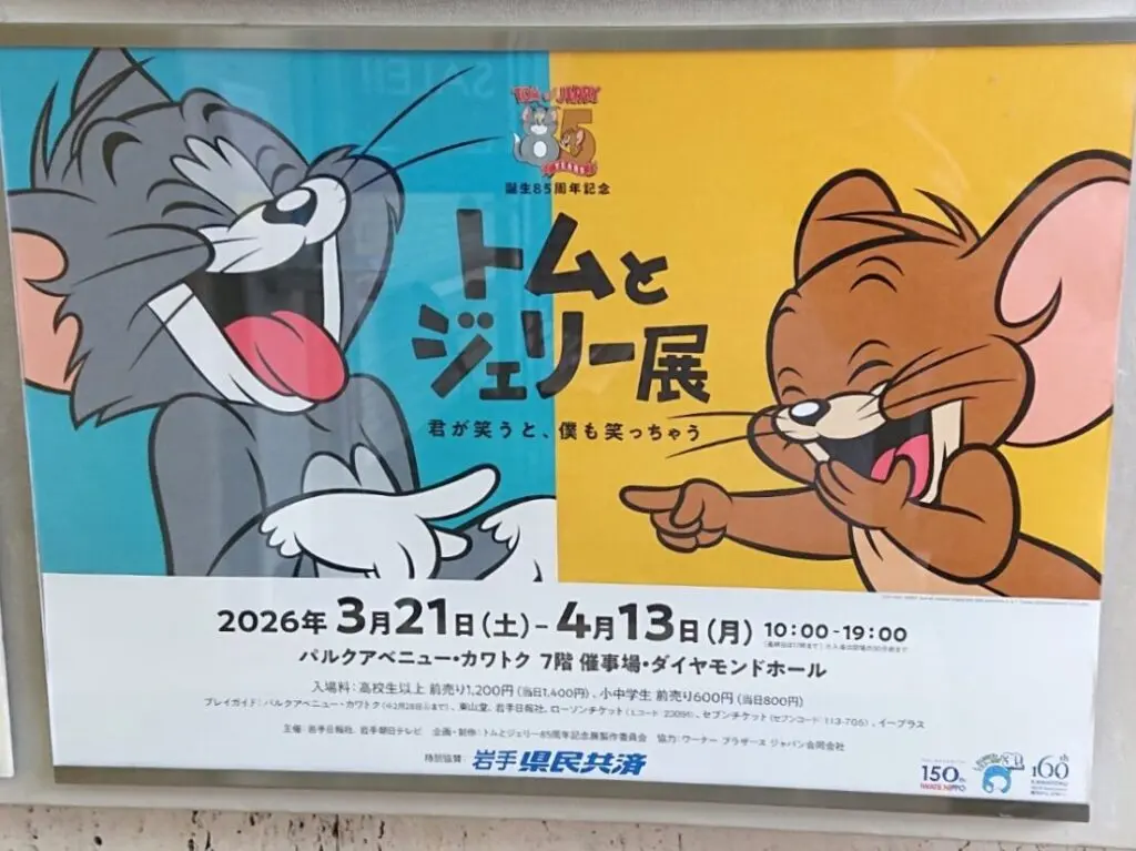 2026年3月21日(土)よりパルクアベニュー・カワトクでトムとジェリー85周年記念展が開催されます! 全国各地で開催されているトムとジェリー展の見どころのひとつ、岩手のご当地グッズが記念展の公式サイトで公開されていました。